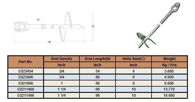 A Yokelink No Wrench Anchor vezetékeket a közüzemi oszlopokon való kivezetésre használják. Egy kovácsolt szemből készült horgonyrúdból, szögben vágott hegyből és egy hegesztett Helixből áll. A szemek mérete megegyezik a Thimble Eye horgonyrúddal vagy a Triple Eye horgonyrudakkal. Tűzihorganyzott, hogy megfeleljen az ASTM A153 specifikációnak