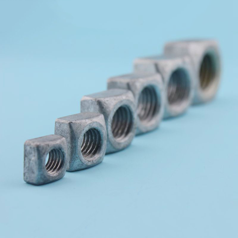 A Yokelink négyszögletes anyákat a gépcsavarok, kocsicsavarok és szigetelőcsapok rögzítésére használják . A horganyzott szögletes anyák túlméretezettek, hogy kompenzálják a csavarok korrózióálló bevonatát. ANSI/IEEE Std C135.80 és ANSI B18.2.2 szabványból gyártva, tűzi horganyzott, megfelel az ASTM A153 szabványnak.
