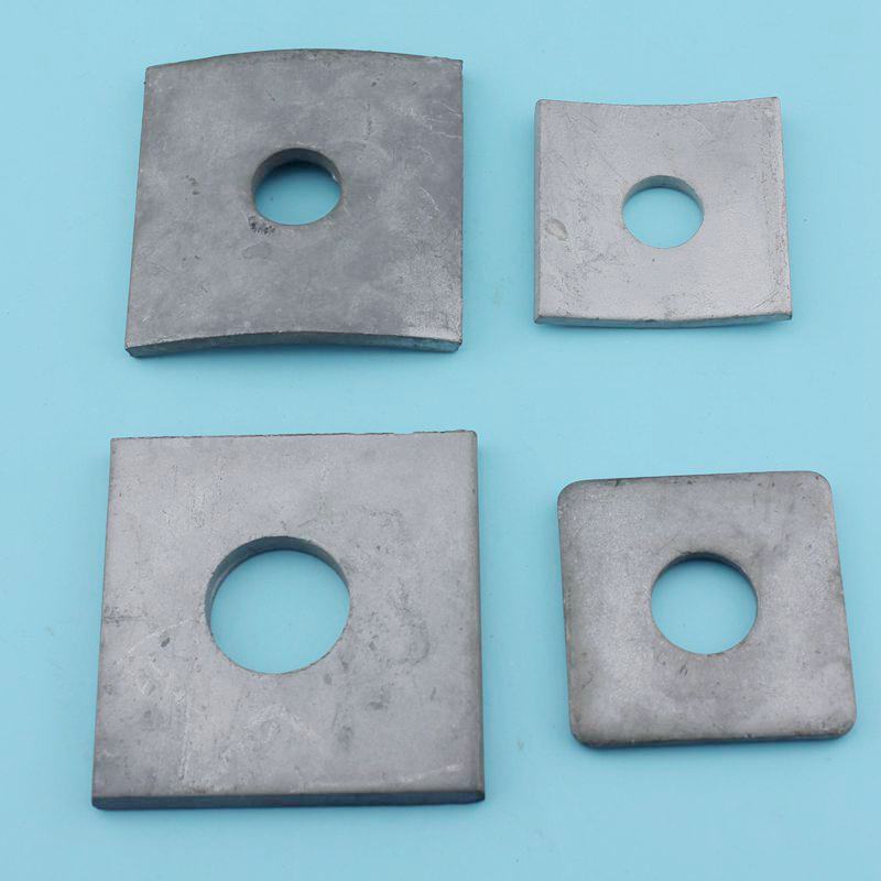 A Yokelink szögletes lapos alátétet a kerek alátétek helyett használják, ha nagyobb teherbíró felületre van szükség. A négyzet alakú íves alátéteket leggyakrabban csavaros csatlakozású faoszlopokon használják. Az ANSI/IEEE Std C135.80 szabványból készült alátét, tűzihorganyzott, megfelel az ASTM A153 szabványnak.