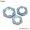 Önzáró Bélyegzett palástanyák, más néven ellenanya vagy ellenanya, egyfajta rögzítőelem, amelyet általában egy másik anya rögzítésére használnak. Kisebb magasságú kialakítású, és gyakran használják olyan helyzetekben, ahol korlátozott a hely. A pallócsavar fő funkciója, hogy megakadályozza a rezgések vagy hőmérsékletváltozások által okozott kilazulást. Úgy működik, hogy csavarra csavarják, és egy másik anyához húzzák, amely mindkettőt rögzíti. Ez különösen hasznos a gépi és autóipari alkalmazásokban, ahol Az anyáknak biztonságosnak kell maradniuk az állandó mozgás és rezgés ellenére.